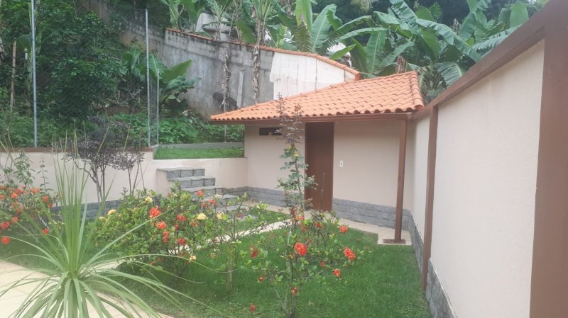 Terreno medindo 7.800m². Construção medindo 227.00m². Imóvel composto de: Sala TV. Sala de visita. Lavabo. Cozinha. 2 Banheiros. 1 Suíte (com sacada). 2 Quartos sociais (com sacada). 1 Escritório. Despensa. Varanda ao redor do imóvel. Garagem. 1 quarto de ferramentas para jardim. Fogão à lenha. Área de lazer. Piscina (7x4m) (38.000 litros). Frutas: Banana Mamão Laranja Limão Tangerina Lichia Fruta do conde Graviola Côco Figo Abacate Caqui Jabuticaba Sapoti Ameixa Caju Jaca Cacau Jamelão Pera dura Maçã fugi Árvores não frutíferas: Louro Jatobá Ipê roxo Ipê amarelo Sapucaia Imbaúba Palmeiras